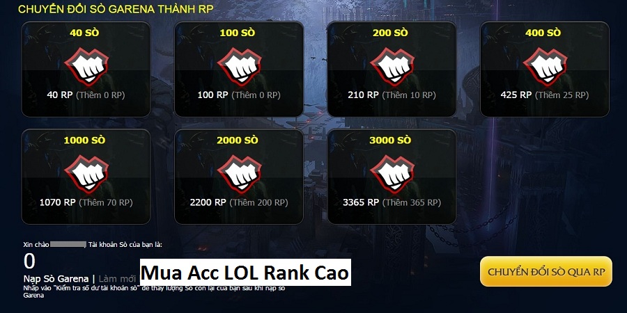 Mua Acc LOL Rank Cao